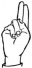 На ћирилици написано КРИСТИНА ГАВРАНОВИЋ састоји се из 18 слова [?]. Исписано ћириличном једноручном азбуком за глувонеме: